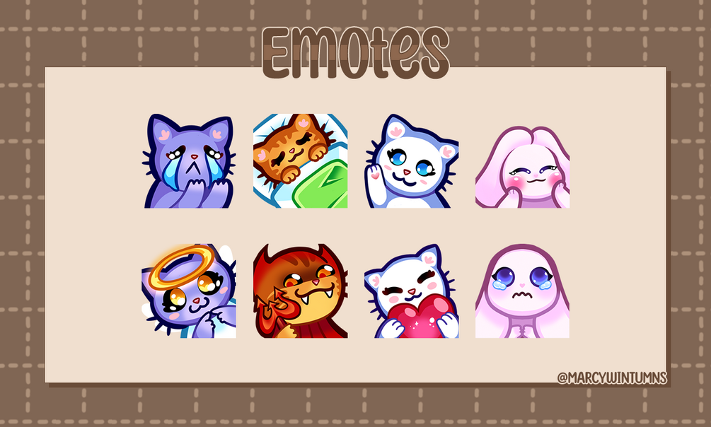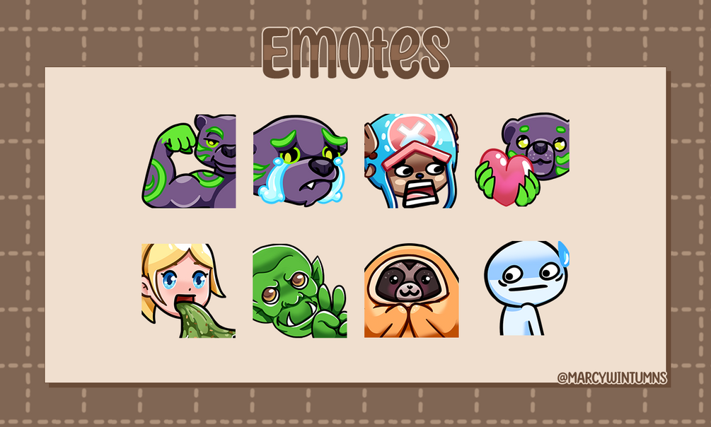 Hey! I'm Marcy, and I'm here to draw your twitch emotes, sub badges and discord server emotes.